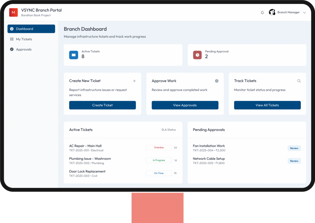 With Vsync, Bandhan Bank now has a centralized and transparent way to manage vendors across its network. Branch-specific service tickets were now easily accessible in a single portal.