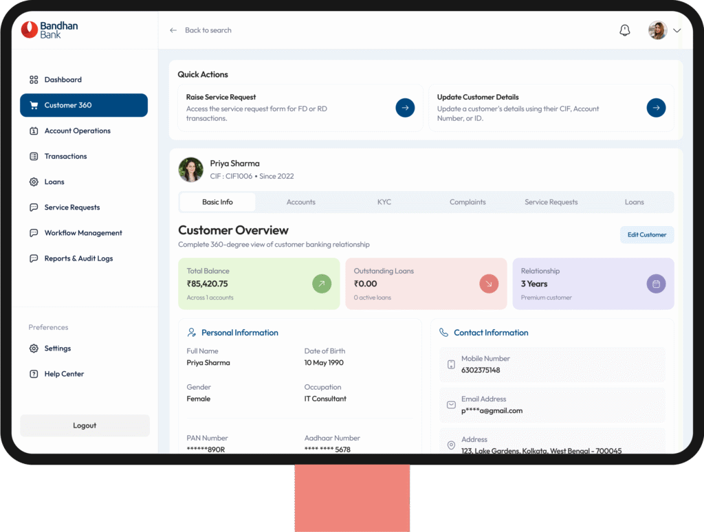 Sangam is now deployed across Bandhan Bank’s branch network, serving thousands of employees daily. It has become the single interface for customer operations, reducing CBS dependency while improving transparency, security, and user experience.